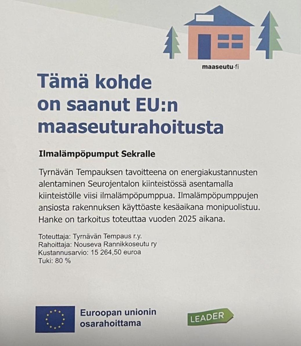 Seurojentalolle on asennettu 5 kpl ilmalämpöpumppuja. Ilmalämpöpumppujen avulla saadaan säästöjä rakennuksen lämmityskustannuksista sekä tehostettua ilmanvaihtoa salissa ja tarvittaessa viilennettyä tiloja. Ilmalämpöpumppujen hankintaa varten perustettiin kehittämishanke, johon saatiin merkittävä taloudellinen tuki Nouseva Rannikkoseutu ry:ltä.