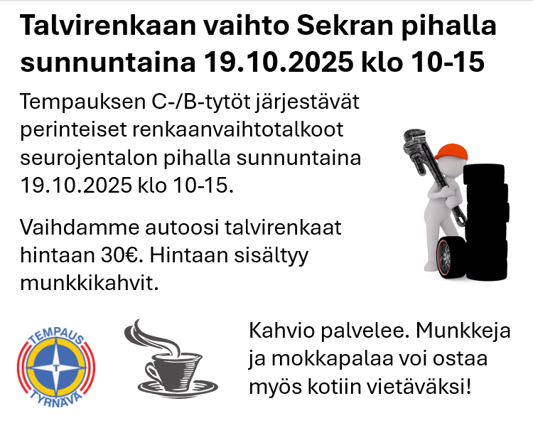 Renkaanvaihtotalkoot su 19.10. klo 10-15!